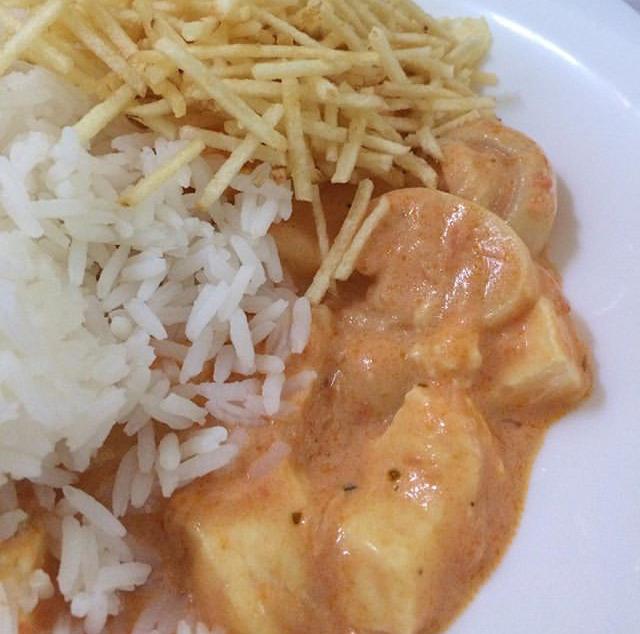 Coloque a mostrada, molho inglês e o catchup e depois o conhaque flambado em uma concha. Por último o creme de leite e o queijo meia cura picado em cubos. Quando o queijo começar a derreter, desligue o fogo e sirva.